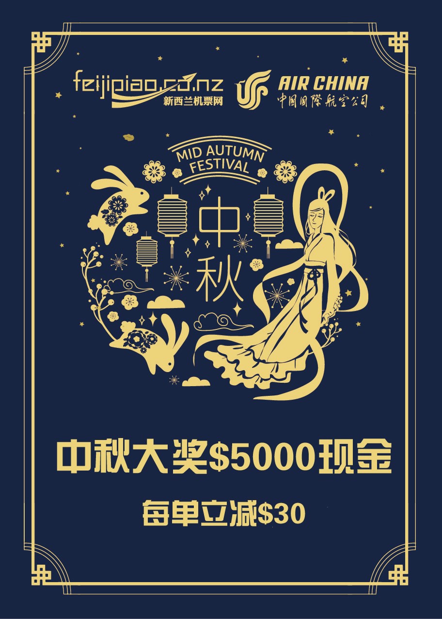 中秋将至,新西兰机票网及中国国际航空公司