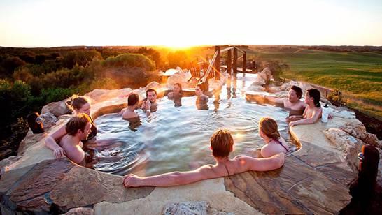 半岛温泉 Peninsula Hot Springs 位於莫宁顿半岛美丽的海滨环境中,是集天然热矿泉与水疗中心於一体。热泉水来自地层深处,流入超过25个水池丶浴池和体验中心。浴场以天然环境为基础,建有多处花园丶浴谷丶洞穴池丶行走按摩池丶湖边池丶桑拿浴池丶冷水池丶热浴按摩丶家庭洗浴区等等。