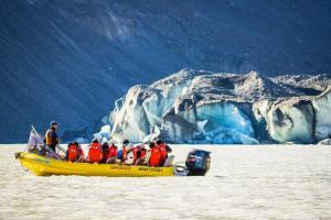 从赫米蒂奇酒店出发坐车到塔斯曼山谷,30分钟徒步穿越国家公园,到达塔斯曼冰川湖后,登上我们特别定制的MAC船(1小时)在冰川内流湖上欣赏千变万化的塔斯曼冰川景观,经验丰富的导游将为您提供解说。
